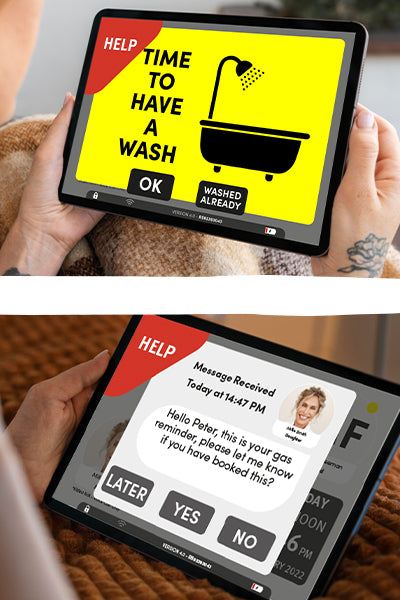 Carers can send reminders through the Video Carephone, including prompts to take action, such as take medicine, have a wash, take a drink. These can be set up as a daily, weekly or a one-off reminder. Alcove can set up to five different responses to a reminder also that can notify carers of the response, or lack of response, by a text message or as a notification on the Alcove Android or IoS App.