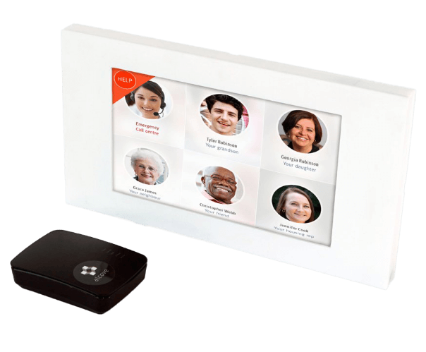 To video call into the carephone, you need to have an Android or iOS phone, a tablet, a laptop computer, or a desktop computer with a camera and speakers. It has its own phone number so you can call it too. You can also send it text messages, which pop up on the screen.